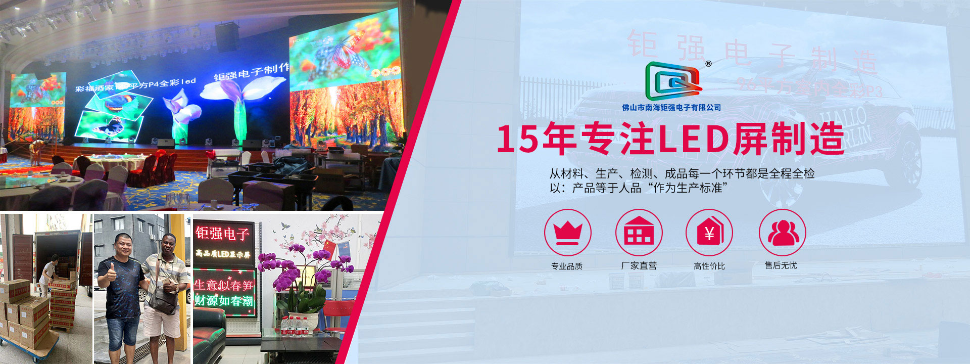 佛山市南海鉅強(qiáng)電子有限公司是專業(yè)致力于LED顯示屏的研究、生產(chǎn)、銷售、工程服務(wù)的企業(yè)。主營(yíng)LED顯示產(chǎn)品:室內(nèi)小間距LED顯示屏、室內(nèi)全彩LED顯示屏、戶外全彩LED顯示屏、LED舞臺(tái)租賃屏、LED異形屏、排隊(duì)叫號(hào)屏、車(chē)間工業(yè)看板、并批發(fā)多種型號(hào)LED邊框鋁材及相關(guān)配件...